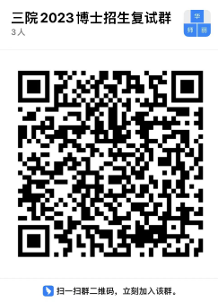 请复试考生扫描钉钉二维码加入“三院2023年博士招生复试群”,入群备注考生编号及姓名。