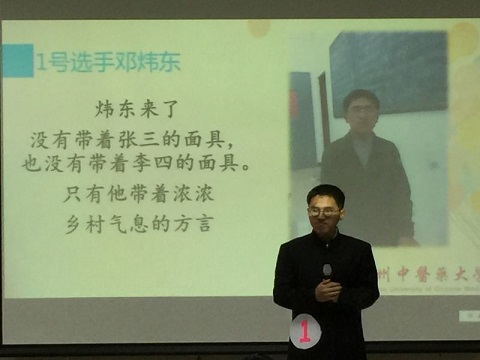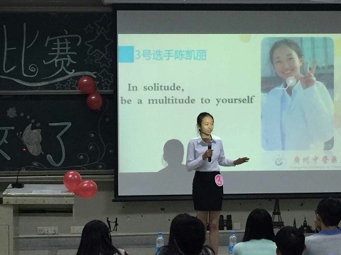 紧接着的即兴朗诵的环节,陈凯丽同学通过自己淡定,从容,声情并茂地朗诵,成功进入巅峰对决。而其余的三位选手则要进
