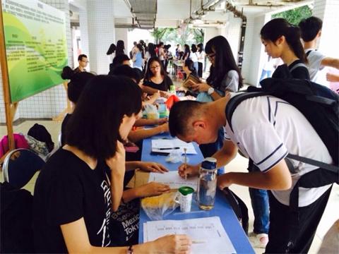 9月8日,一个特殊的日子,在紧锣密鼓迎新筹备工作后,我们终于迎来了2015级新同学。早上7点,2014级师兄师姐们就在学生宿舍9、10栋间大本营热情迎接新生及家长的到来。主管学生工作的江钢辉副书记也来到现场,对迎新工作进行了视察,并对其中细节的工作进行了嘱咐。大家的热情接待给新生及家长留下的深刻而美好的印象。
