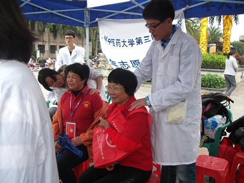 早上8:30,服务活动正式开始。学生志愿者为群众量血压、拔火罐、艾灸和推拿按摩。现场吸引了许多群众,求医问诊的群众络绎不绝。大批群众前来服务摊位,志愿者们耐心地为前来就诊的群众热情服务,解答疑难问题,开展健康咨询活动。据不完全统计,本次活动共接待了近200人次,得到了广大群众的一致好评。