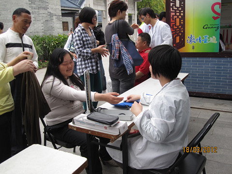 两天的志愿服务从上午9点开始。志愿队员们为群众量血压、艾灸、推拿按摩、宣传中医保健知识等。现场吸引了许多路人,前来求医问诊的群众络绎不绝。志愿者们尽管已是满头大汗,仍为群众送上的热情服务,耐心地解答疑难问题。据不完全统计,本次活动共接待了群众近400名,同学们热情的服务得到了当地群众一致好评!