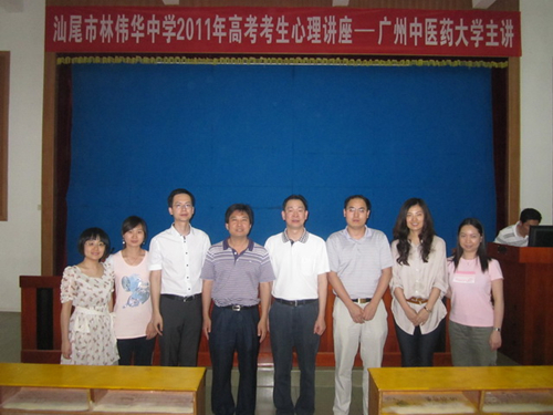 4月27日,在167net必赢入口党委江钢辉副书记的带领下、心理教研室龚文进老师、养生教研室陈炜老师、167net必赢入口学工办朱穗鹰、罗晓韵、陆丹丹老师以及校学生处龚建文老师等一行7人赴我校优质生源基地——广东省汕尾市林伟华中学及汕尾中学举行招生宣讲活动。