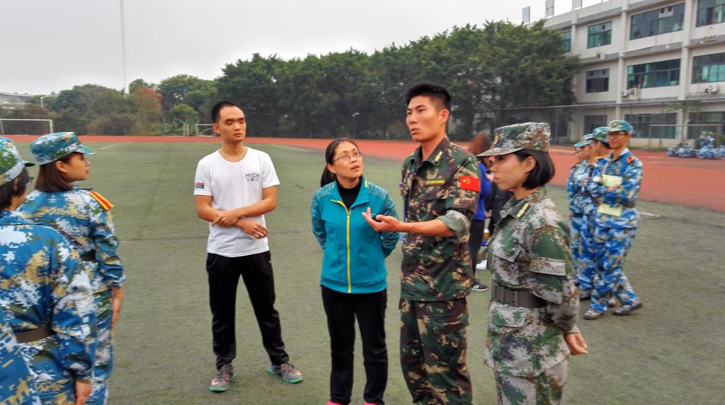 赵老师首先向军训教官详细了解了同学们在训练中的表现。教官表示,六连的孩子们在10天的训练中纪律严明,整齐划一,表现出良好的精神风貌。赵老师代表学院对教官们表示衷心的感谢,并恳请教官严格要求,加强训练,对不守纪律,不听指挥的同学严加管教。
