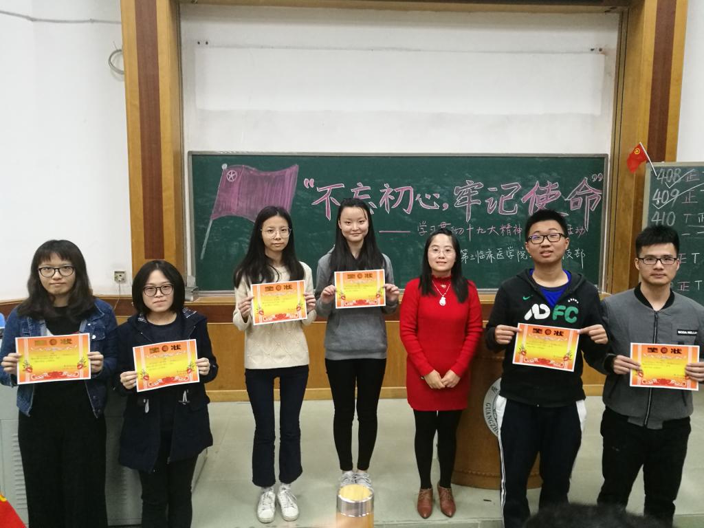 通过此次主题团日活动,同学们更加深入学习了十九大精神,了解了相关知识。同学们纷纷表示一定要不忘初心,以实际行动学好本领,为将来成为一位名副其实的医务工作者而不懈努力。