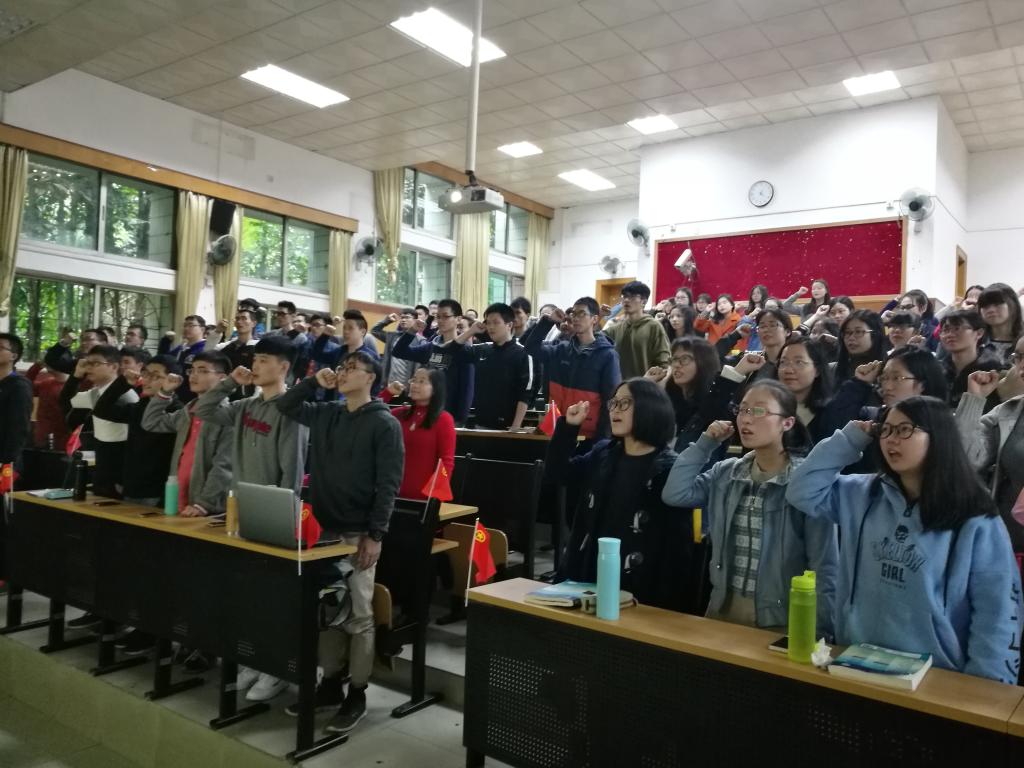 紧接着,全体师生观看了《十九大究竟是一个怎样的大会》、《300秒速览十九大报告》等十九大宣传教育视频。观看完视频之后,同学们纷纷走上讲台,结合自身实际畅谈自己的体会和感受。吴登辉、何琪、梁艳艳等同学从各个角度畅谈自己聆听和学习习近平总书记重要讲话后的所思所感。大家一致表示,会严格要求自己,时时事事不忘创先争优、主动思考、勇于创新、刻苦学习、增强本领,为祖国医学发展贡献力量。针对十九大报告和中国共产党发展史,活动也设置了有奖竞答环节,同学们踊跃回答问题,在题目中进一步加深了相关知识的了解。活动最后,全体同学再次庄严宣读医学生誓言。
