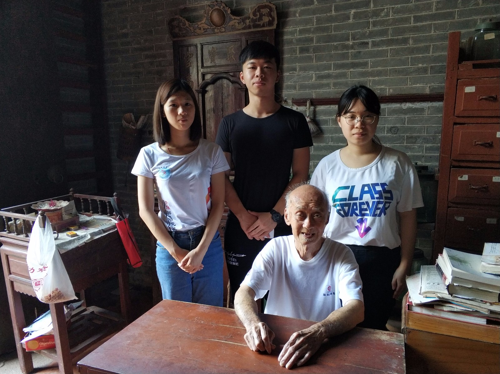 最后队长孙冬和副队长梁小琳携调研组长黄梓莹以及宣传组周旭一同前去拜访当地已年近90的老中医吴松新。他以治病救人,求死扶伤为己任,向我们分享经验。同学们纷纷表示深受教育,获益匪浅。期间,我们也考察村情,了解学校古村落文化,参与学习规划并推广曹边村古村落改造总体设计,通过给予一定建议及收集资料图片并整理发布等方式协助曹边村成为“美丽乡村”示范点,打响曹边品牌。航夏纪真情,拾爱筑曹边。此次三下乡活动丰富了居民生活,教育引导儿童,培养素质传授知识。下乡使同学们增强了使命感责任感,从而更自觉地学习好本专业知识技能,增强合作意识,提高自身综合素质更好的为国家发展做贡献。