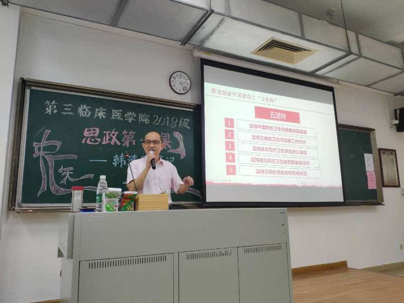 在思政课接近尾声的时候,韩书记新生们给予了殷切的期望,表示同学们毕业后要肩负着改善国内当前基层医疗卫生建设相对薄弱的状况这个艰巨而又光荣的使命,所以在校不仅应该夯实基础理论,多参加社会实践活动,培养中医思维,还要把自己的专业特点,人生规划同习近平总书记谈及的“健康中国策”融合在一起,更要结合自身实际,认真审视,深刻反思,在基层这片广袤的土地上撸起袖子加油干,把服务基层群众作为自己的宗旨。同学们纷纷表示,作为享受国家优惠政策的农村定向学生,一定要响应党的号召,承担起这份责任。通过这次思政课,大家更加坚定理想信念,立志扎根基层,争取做一名优秀的基层医生!