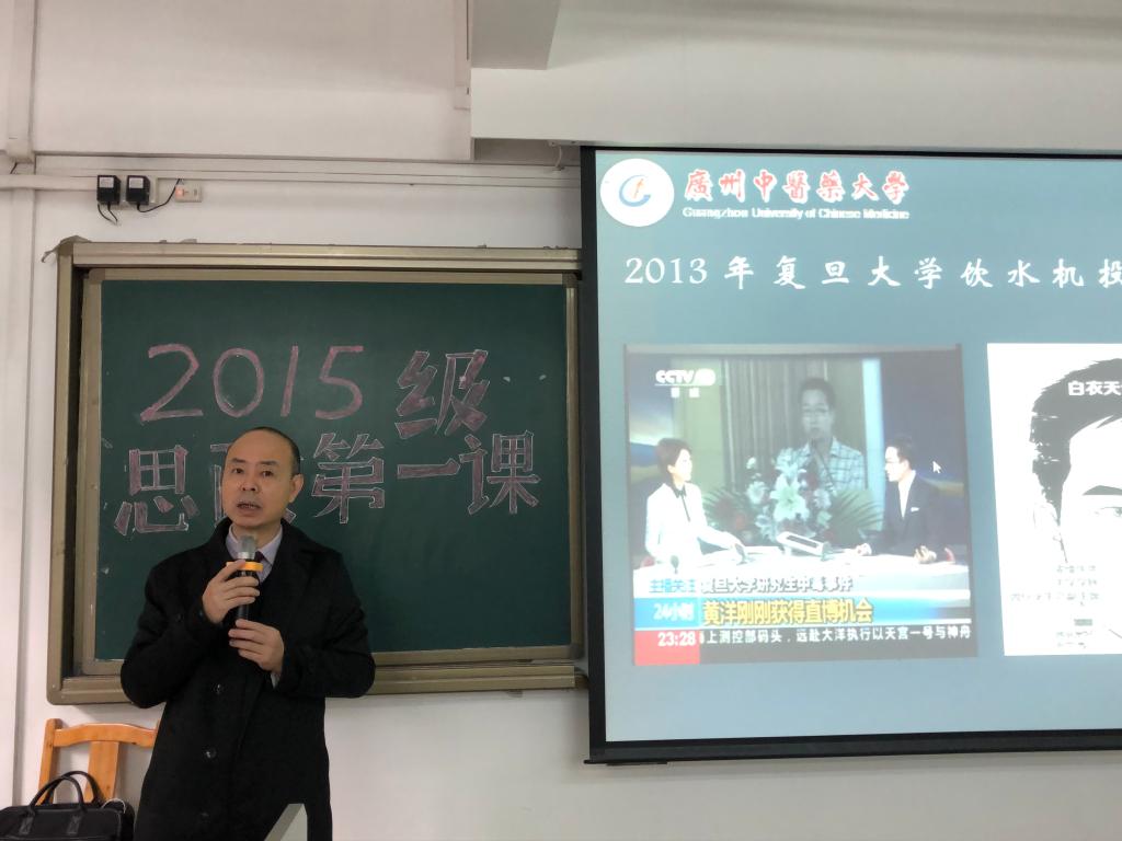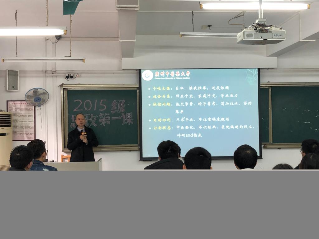 为深入学习贯彻习近平总书记重要讲话精神,加强大学生思想政治教育,培养大学生正确的世界观、人生观、价值观,3月11日上午,167net必赢入口院长李坤寅教授以“落实健康中国战略,做一名合格医生”为主题,为我院2015级学生上思政第一课,2015级辅导员罗晓韵老师也一同聆听授课。
