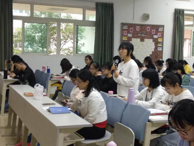 活动在庄严的团歌中拉开帷幕。全体团员观看了《焦点访谈》“传承五四精神,唱响青春之歌”的视频,回顾了五四运动的历史背景和发生经过,让团员们置身于一百年前,切身体会五四运动的伟大历史意义。接着,活动进入“回望百年五四的激情岁月”环节中,同学们积极发言,讲述了她们所了解的五四运动。随后,郑细燕,王佳鑫同学进行了激情澎湃的诗歌朗诵——《翻开五月的日历》,让在场团员感受到五四运动时期青年的热血沸腾,激起团员们对未来充满无限希望。游戏环节“五四人物猜猜猜”,让同学们积极参与、收获快乐的同时也加深了对五四青年的印象,学习了为理想信念献出生命的革命先烈们的伟大事迹和不怕牺牲的革命精神。接着,同学们合唱《我们都是追梦人》,以流畅的格调演绎着青春的激昂,课室萦绕着梦想的声音。