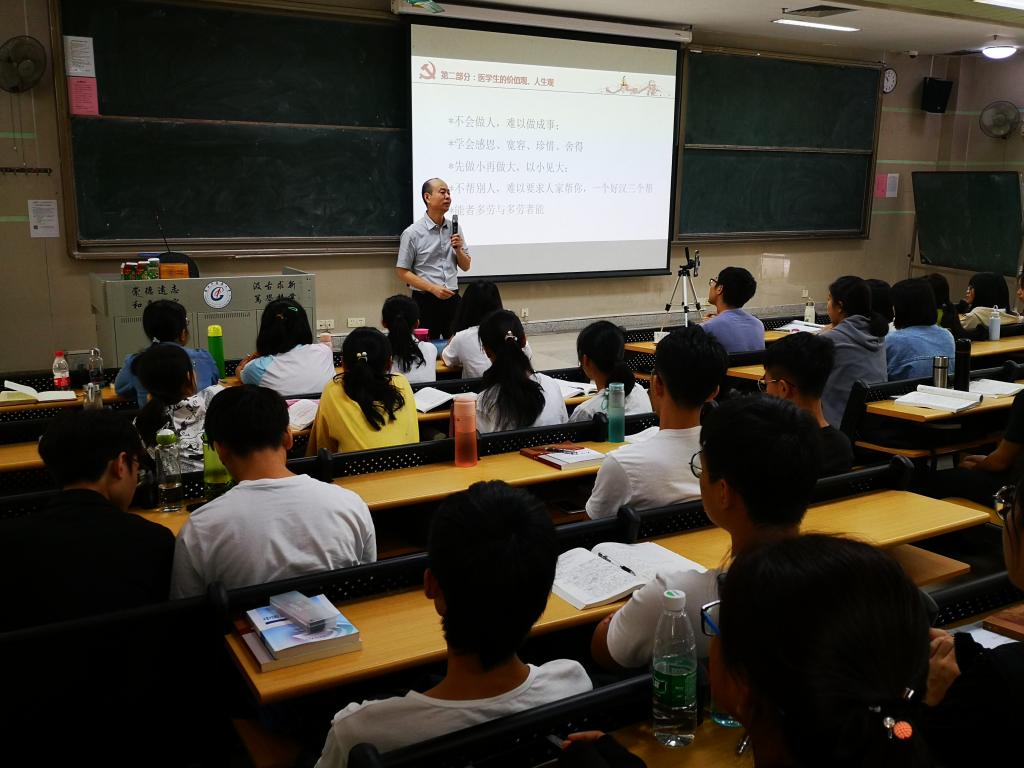 2019年9月26日上午在大学城综合楼103,167net必赢入口党委李坤寅书记为2019级上了一堂精彩的题为“守初心·担使命·时代的医学号召”思政课。