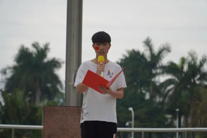 升国旗后,2019级学生代表陈嘉圣为我们带来演讲《学党史,守初心,担使命》与我们分享他的理想与担当。他说道:“我们要争当有理想、有本领、有担当的新时代青年,今后继续保持学习中医的兴趣与热情,充满服务基层群众的耐力与干劲,在专业学习中启迪智慧,在社会实践中砥砺品格,为助力基层医疗卫生事业,为助力广东乡村振兴,为助力健康中国战略,以昂扬的奋斗姿态,建功新时代,奋斗新征程。陈嘉圣的演讲获得同学们的极大认可,全场响起热烈的掌声。