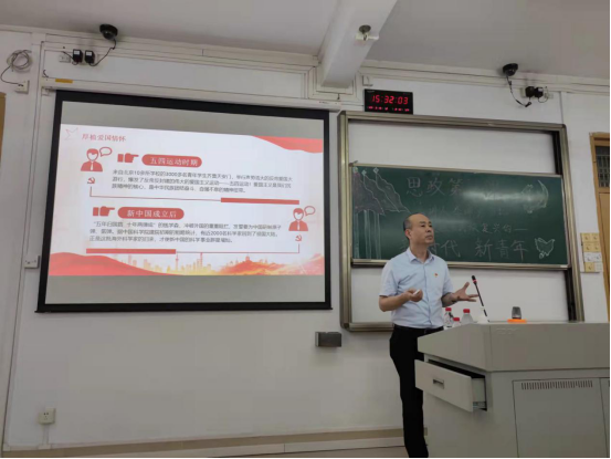 李坤寅引用习近平总书记在纪念五四运动100周年大会上的重要讲话作为课程开篇,结合毛主席的重要论述,让同学们对把握新时代青年学生的责任和担当有了进一步的了解。随后,李坤寅围绕主题,结合自身学习以及从医经历,深入浅出地告诉同学们作为新时代青年要厚植爱国情怀、坚定理想信念、常葆进取之心、锤炼品德修养、勇于砥砺奋斗、努力练就过硬本领。李坤寅指出,处在如今和平美好的时代,我们要常怀感恩之心,珍惜幸福生活。作为医学生,应该增强学习紧迫感,努力掌握文化知识和专业技能,把学习作为一种精神追求和生活方式,在学习中增长知识、提升技能、锤炼品格,为成为一位仁心仁术的好医生而不断努力。