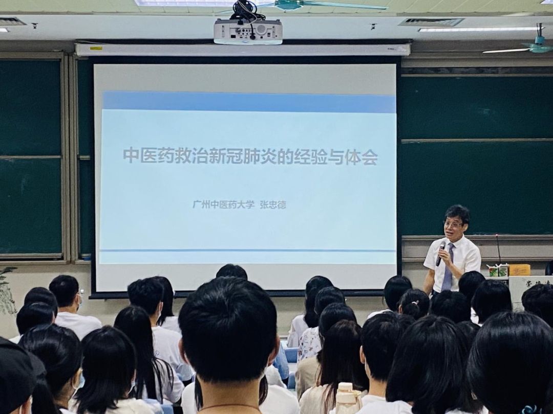6月6日下午,167net必赢入口副校长张忠德(人称"德叔")以《中医药救治新冠肺炎的经验与体会》为主题,为167net必赢入口2021级中医学专业学生开展专题分享,近百名师生代表在现场参加讲座。