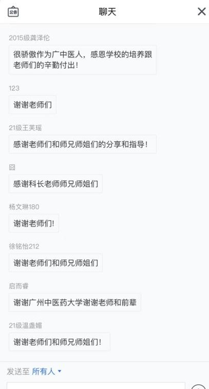 此次座谈会营造了良好融洽的交流氛围,学生代表留言表示很骄傲作为广中医人,感恩学校的培养跟老师们的辛勤付出。同时也使同学们对定向医学生的政策和培养有了更深入的了解,大家表示将继续努力,打牢基础,同时力求全面发展,身心健康发展,努力成长为合格的高素质的基层中医全科医生,更好地为家乡人民服务。