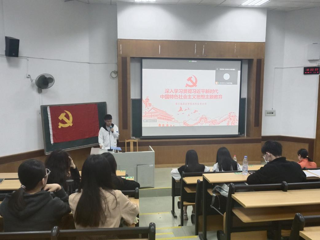 发展对象袁浩涛带领大家一同深入学习贯彻习近平新时代中国特色社会主义思想,全面学习领会习近平新时代中国特色社会主义思想的科学体系、核心要义和实践要求。