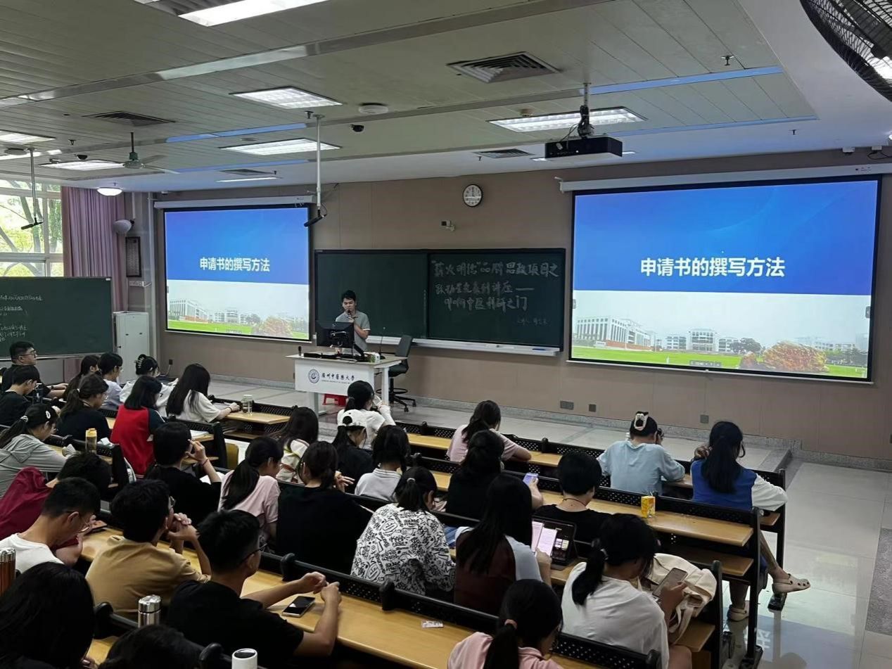 最后,谢智荣老师向同学们介绍了科研方法及途径的过程中着重强调了科研资源利用的方法-----1、利用图书馆资源进行文献检素和阅读. 2、利用互联网获取最新的科研实验室资源 信息和研究成果。3、利用实验室设备进行实验和数据分析。4、学术交流平台参与学术会议和研讨会,与同行进行学术交流与合作。在此基础上,他深入介绍了在校大学生科创申请书的撰写方法,循序渐进、通俗易懂,再次引发了同学心目中有关科研的真切思考。