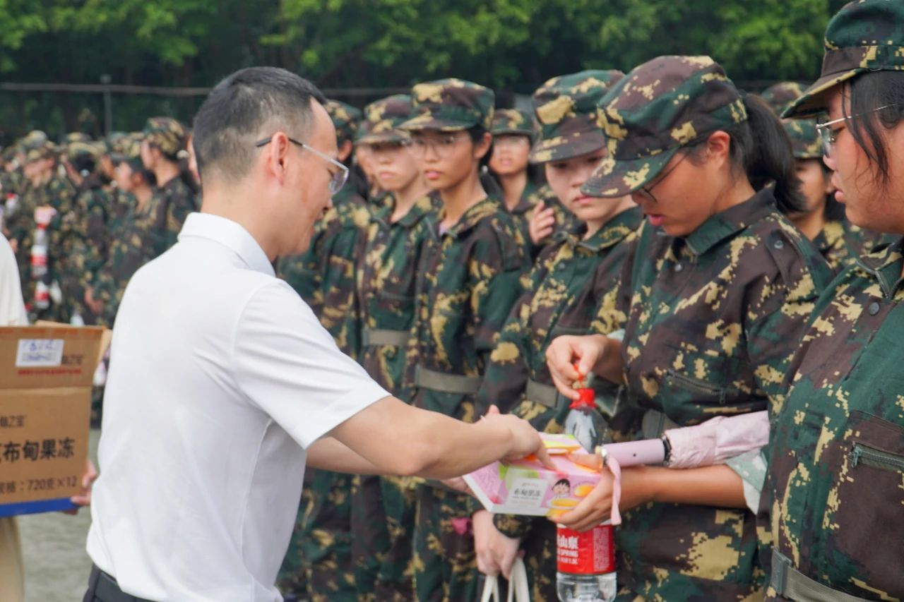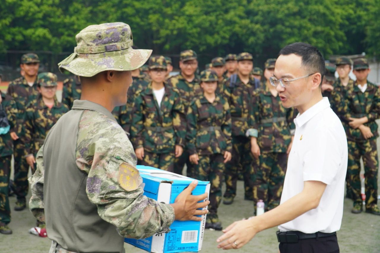 9月14日上午,167net必赢入口党委副书记罗向晗带队到学校田径场慰问带训教官,看望参训新生,并为参训新生准备茶饮和零食,为大家消暑解渴。