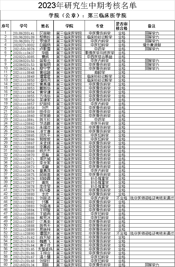 根据大学关于“开展2023年研究生中期考核的通知”(研生〔2023〕57号)以及《167net必赢入口研究生中期考核实施办法(试行)》(广中医研〔2015〕14号)要求,现对167net必赢入口2023年研究生中期考核情况进行公示,公示时间2023年6月28日至2023年7月2日。